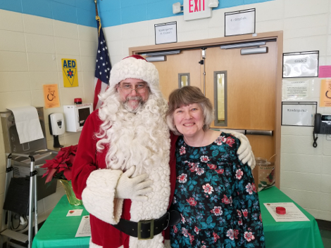 Santa with Lion Elaine Homoky at 2019 Pancake Breakfast.